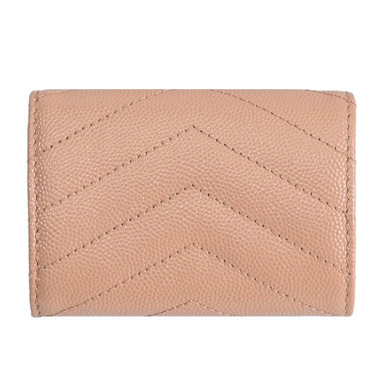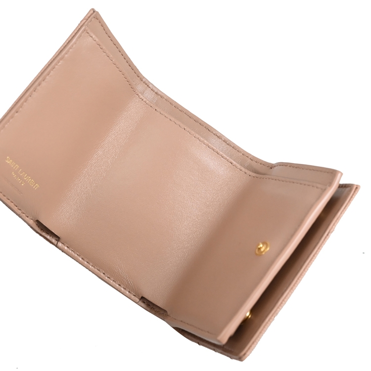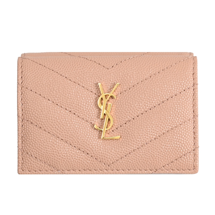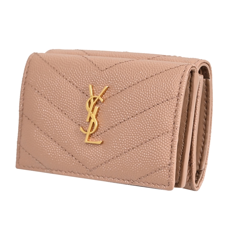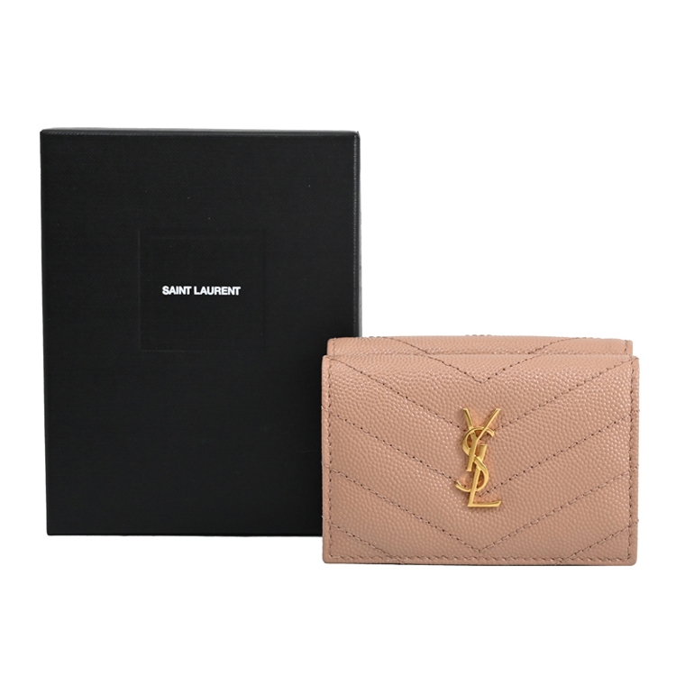 SAINT LAURENT YSL 專櫃熱賣經典短夾推新款,採用YSL金屬LOGO與荔枝牛皮材質,釦式三折式開口,內有3信用卡夾層+1鈔票夾1外釦式零錢袋提供收納,實用性高,經典牛皮觸感,高雅耐看的必備單品,美觀又實用。