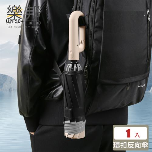 【樂邦】黑膠防曬反向環扣自動勾勾雨傘
