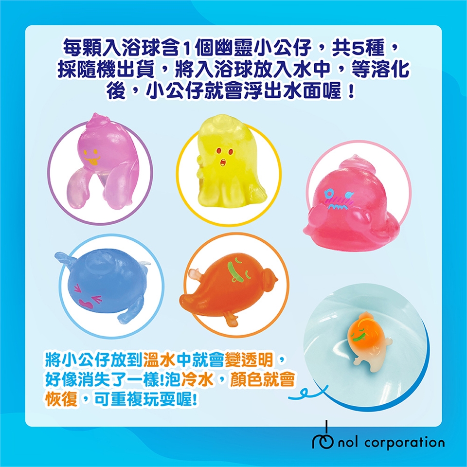 內附1個幽靈朋友們小公仔,放到溫水中,小公仔就會變透明,好像消失了一樣!? 真不可思議!!