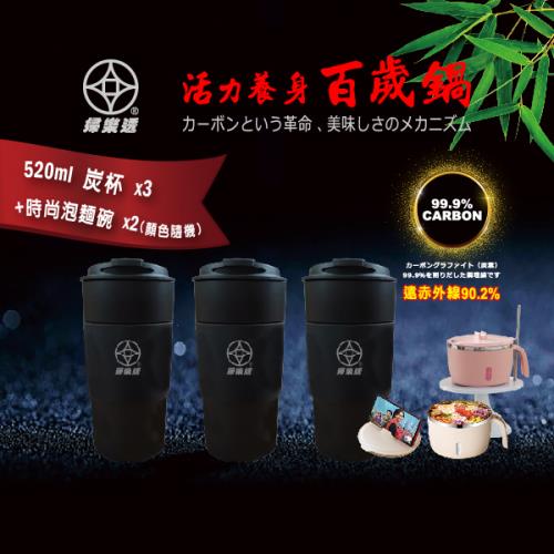 【婦樂透】遠紅外線全炭百歲杯竹炭杯520ml 3入+時尚泡麵碗 2入