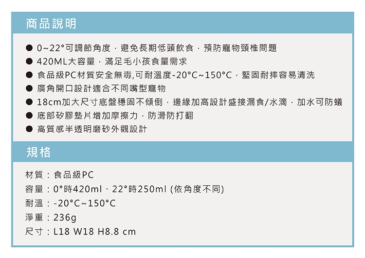 可調角度寵物碗