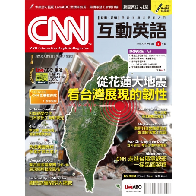 全球212個國家,超過十億人口收看的CNN,每天透過23顆衛星24小時報導世界各地新聞,解析產業動態,《CNN互動英語》由CNN官方授權,每月從:全球新聞、亞洲世界新聞、商業新聞中心、娛樂線上等10大節目中,精選新聞內容,再分為政治、生活、財經、科技、娛樂、旅遊及人物等學習主題,由專業中、外編輯老師加入背景分析,編寫學習重點,讓您確實掌握全球新聞動態,學好英語。