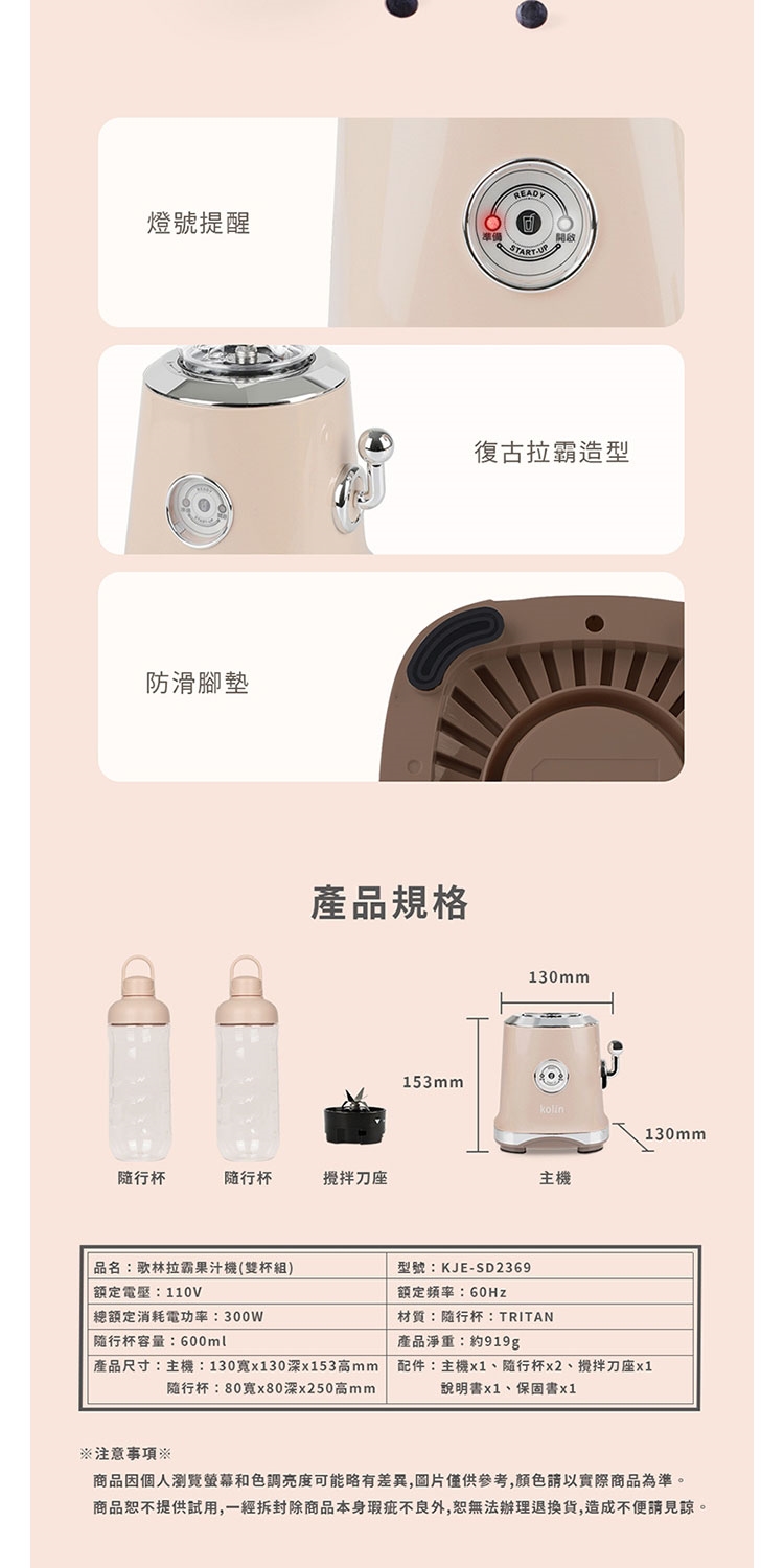 ◎ 配件:主機x1、、隨行杯x2、刀座x1、杯蓋x2、說明書x1、保固書x1