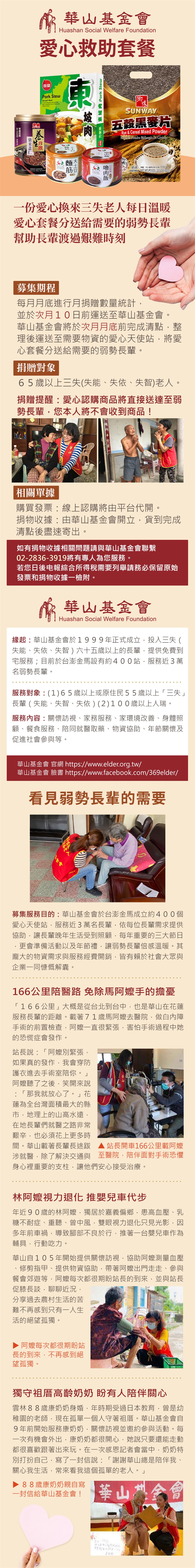 品名:《華山基金會x愛心套餐》認購華山基金會愛心救助D套餐-6個月(購買者不會收到商品)