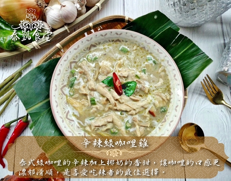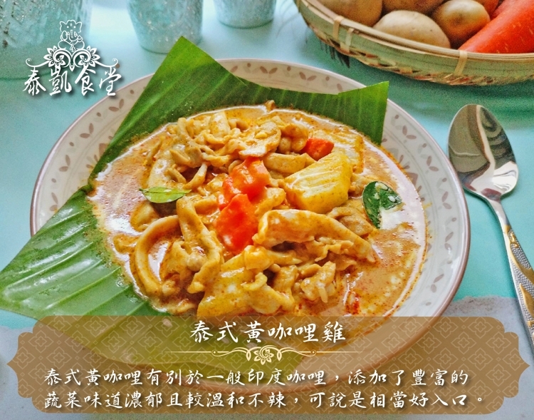 5【泰式黃咖哩雞】、6【辛辣綠咖哩雞】、7【紅咖哩椰汁豬】、8【泰式酸辣牛肉湯】、