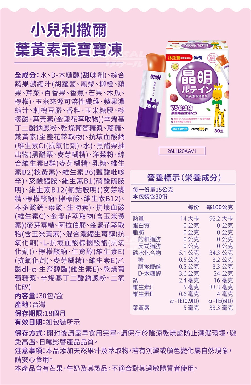 #小兒利撒爾 #兒童保健 #葉黃素凍 #雙游離型 #75倍黑醋栗 #抗氧化