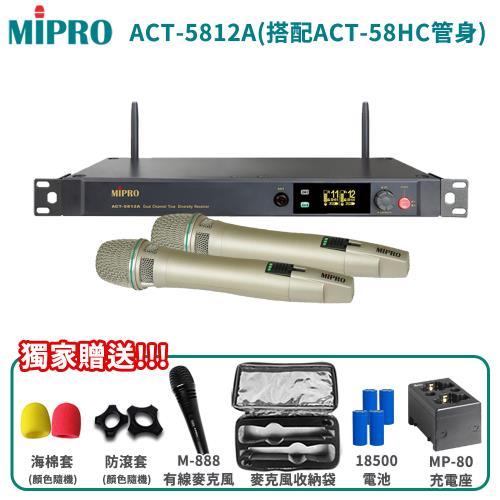 MIPRO 嘉強 ACT-5812A 5 GHz數位雙頻道接收機(搭配ACT-58HC管身/MU-80音頭)六種組合任意選購