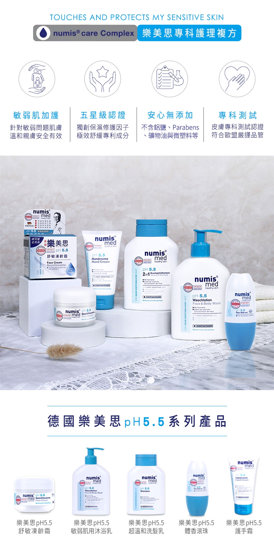 維持肌膚pH 5.5平衡防護,不會破壞天然的酸性保護膜。