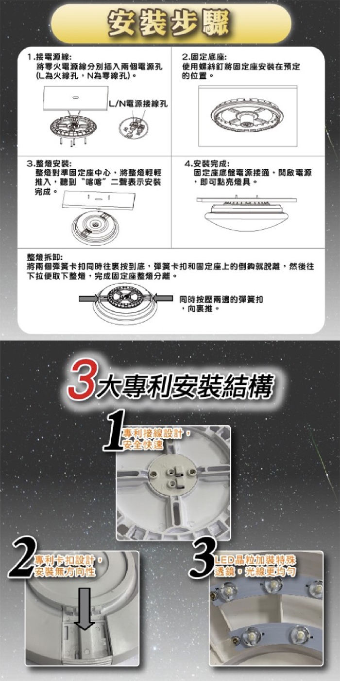 ◎ 請勿使用於調光式開關,請勿自行拆解燈罩以及零件