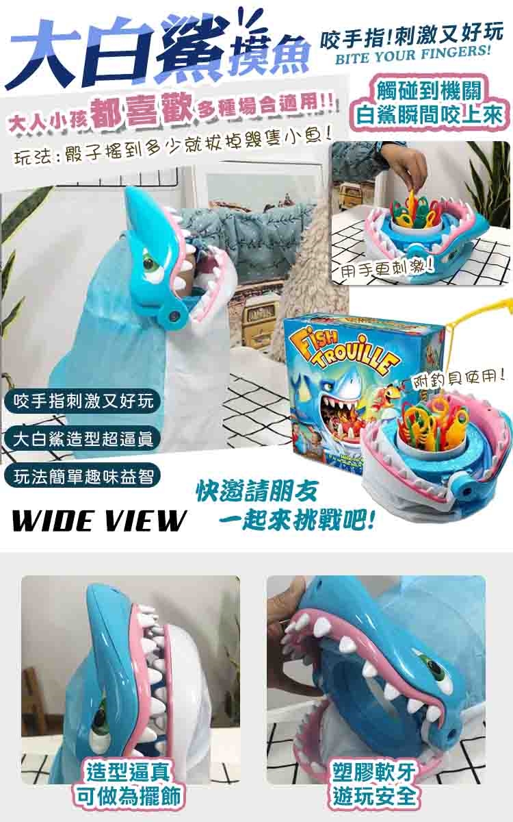 【WIDE VIEW】摸魚摸到大白鯊(刺激桌遊 咬手指玩具 小心鯊魚 釣魚遊戲 互動遊戲/1111-13)