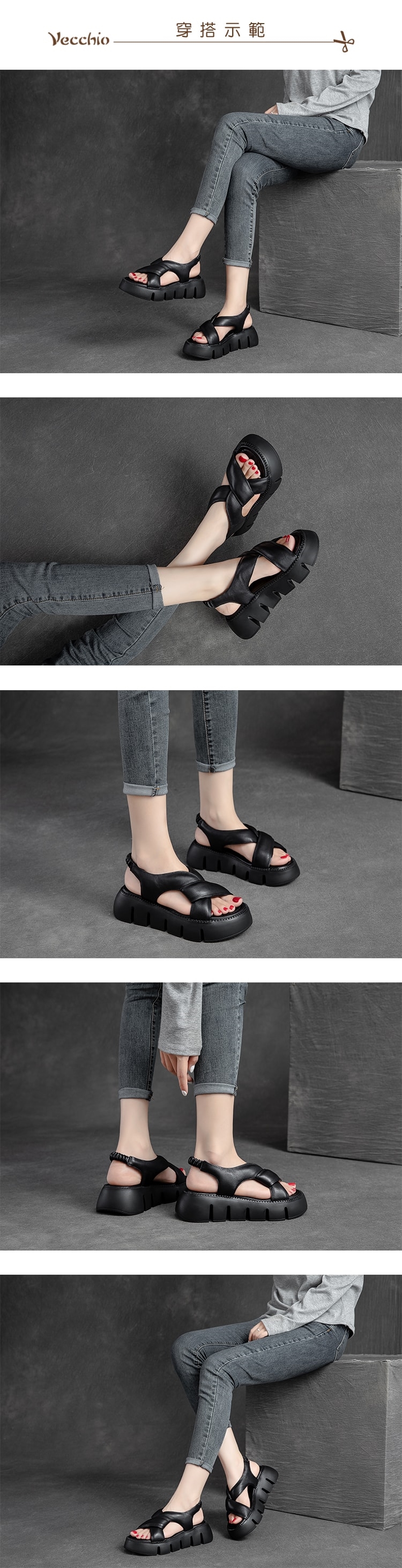 【VECCHIO】全真皮交叉扭結厚底涼鞋/全真皮頭層牛皮交叉扭結鬆糕厚底涼鞋 女鞋 黑