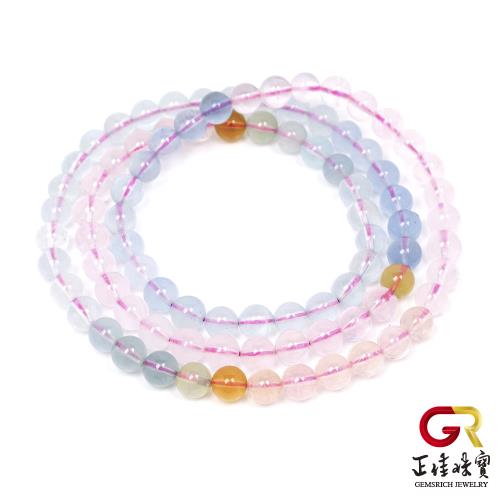 【正佳珠寶】 摩根石 頂級冰質彩虹 6-6.5mm 彩虹摩根石三圈手珠|日本彈力繩