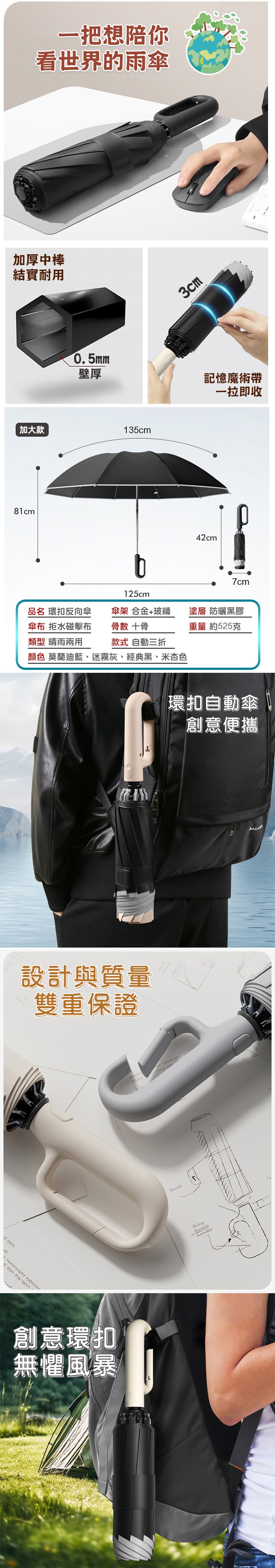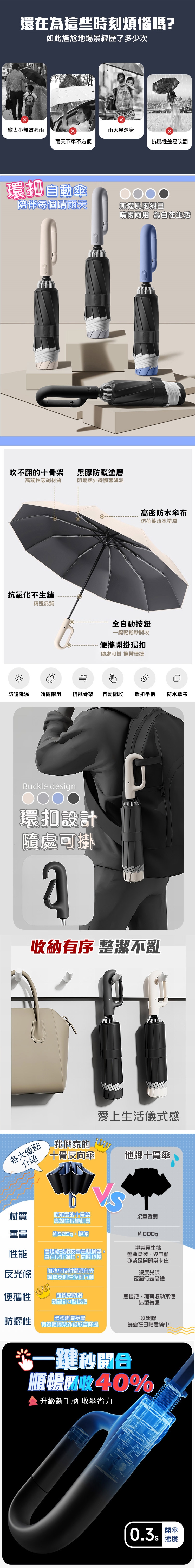大傘面反向傘環扣自動傘的特色