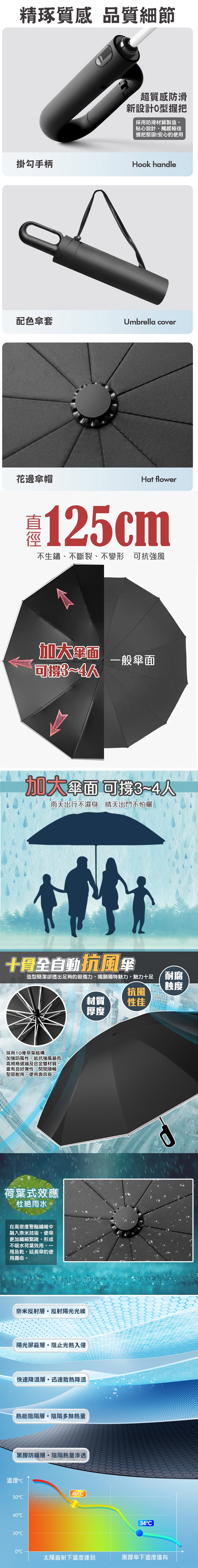 大傘面反向傘環扣自動傘的特色