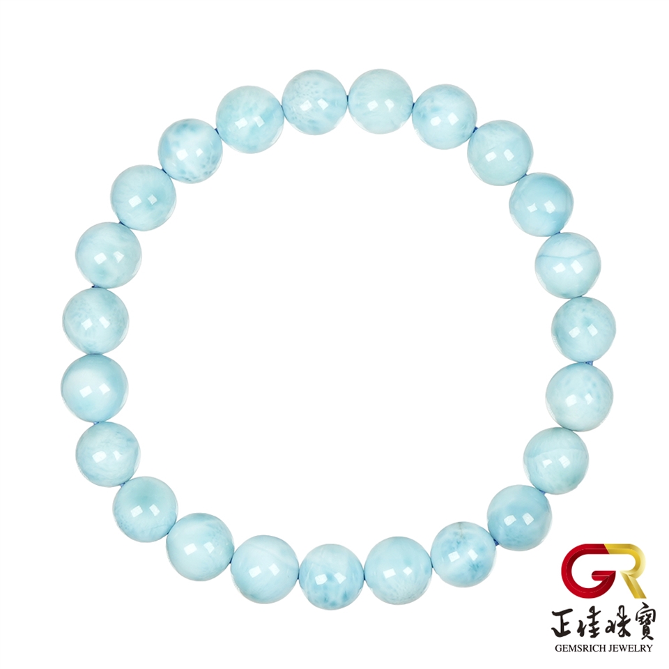 主角:海紋石 拉利瑪 頂級冰海藍 8-8.4mm 海紋石手珠|日本彈力繩