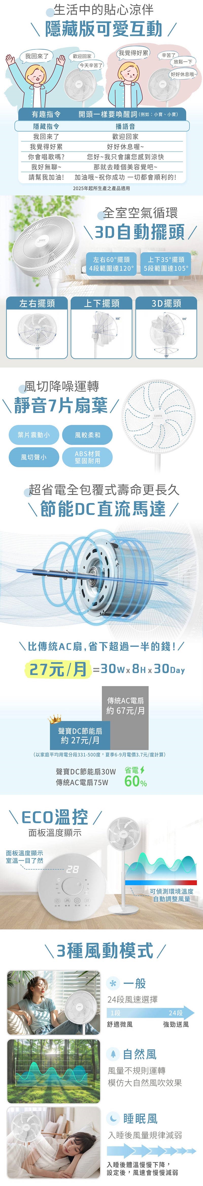 ◆3種風動模式:一般風(24段風速)、自然風、睡眠風。