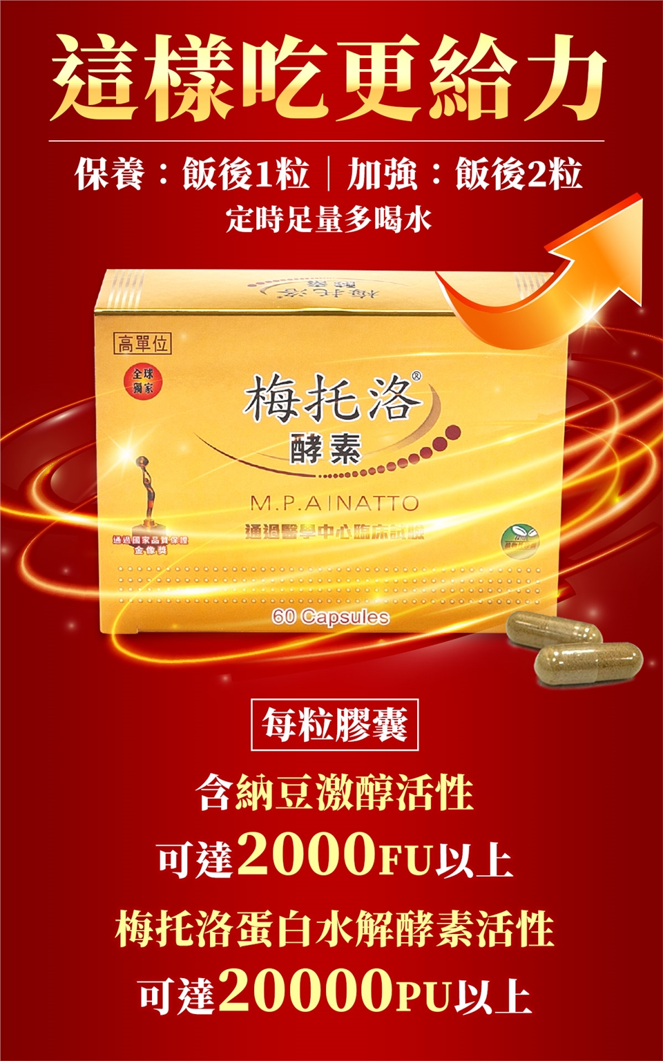 加強保養:每日2粒,請於晚飯後食用