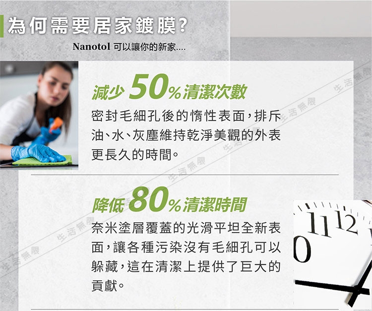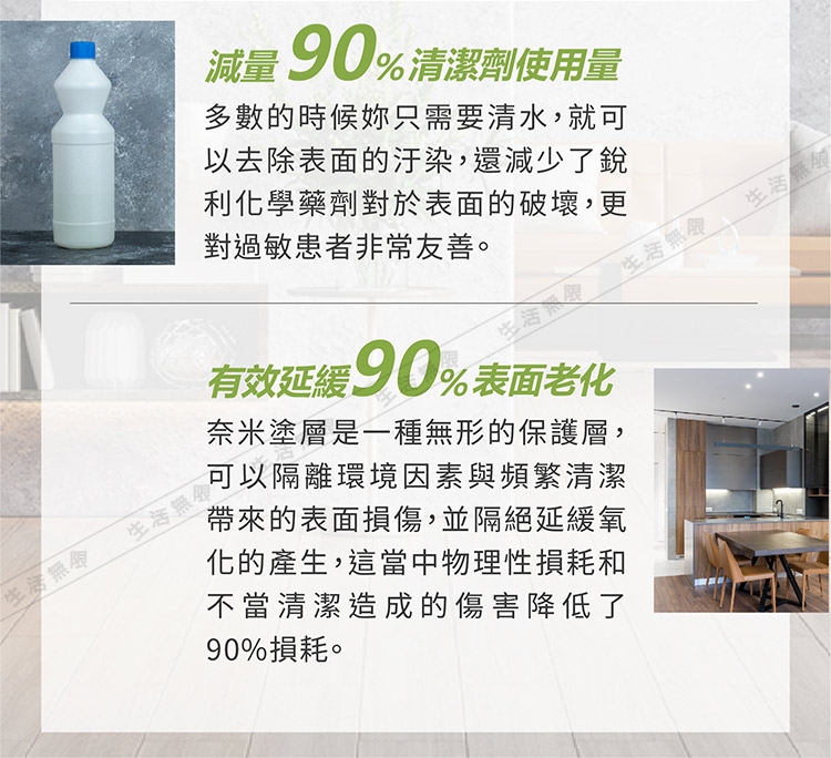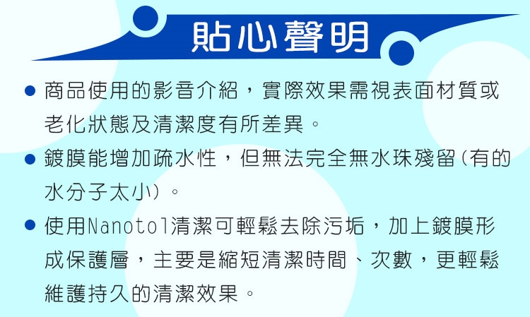 ◆奈米塗層使用後的表面,可以輕鬆用清水清潔