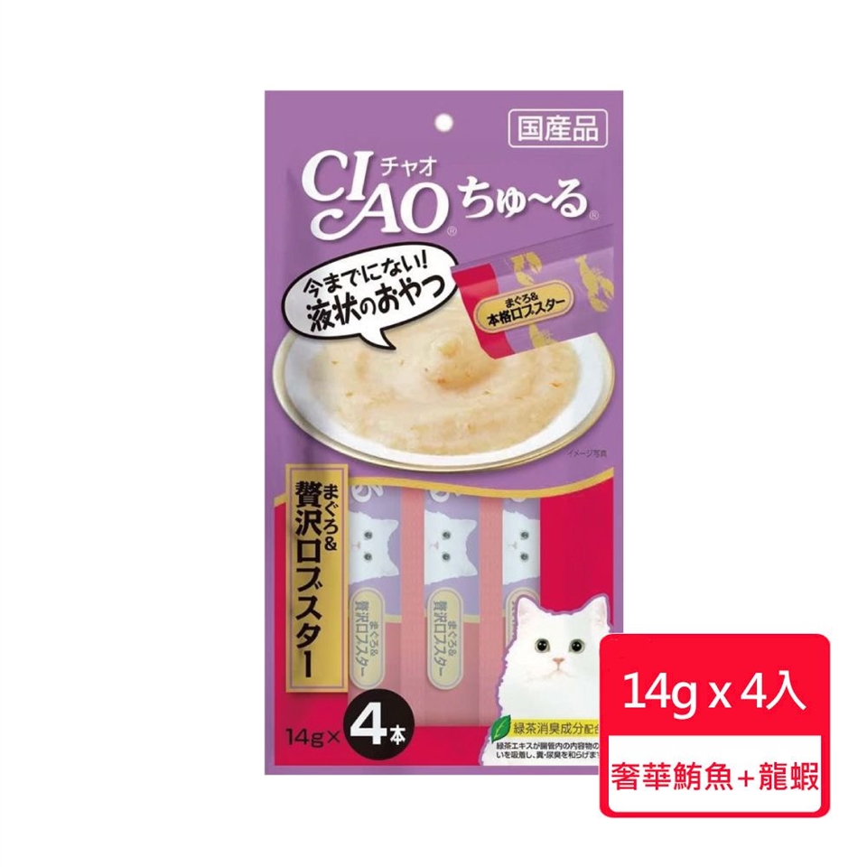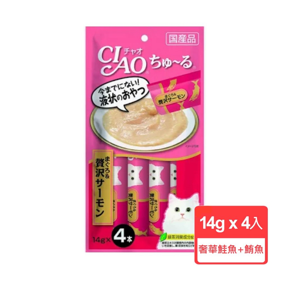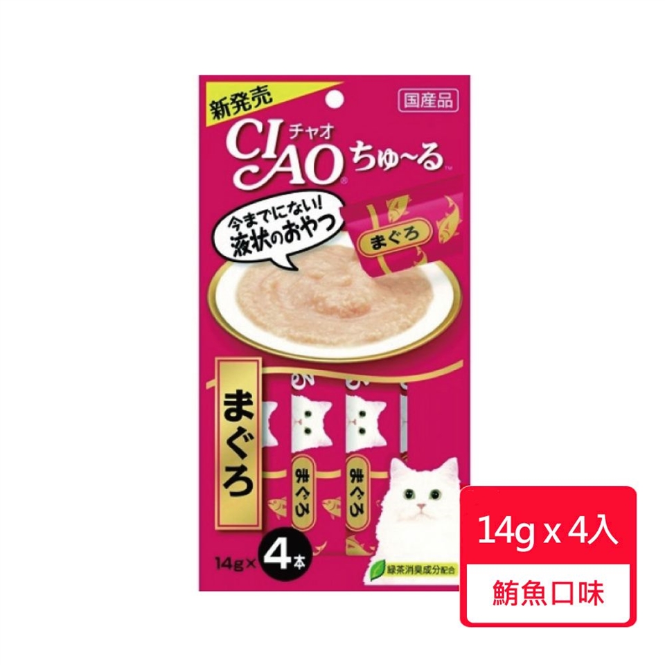 鮪魚、吻仔魚、糖類(Oligo寡糖等)、植物性油脂、增稠安定劑(加工澱粉、多糖增稠劑)、礦物質(Na、P、CI)、調味料(胺基酸等)、維生素E、綠茶萃取物