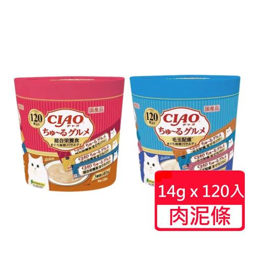 【CIAO】貓咪零食肉泥條14g*120入/桶;兩款可挑