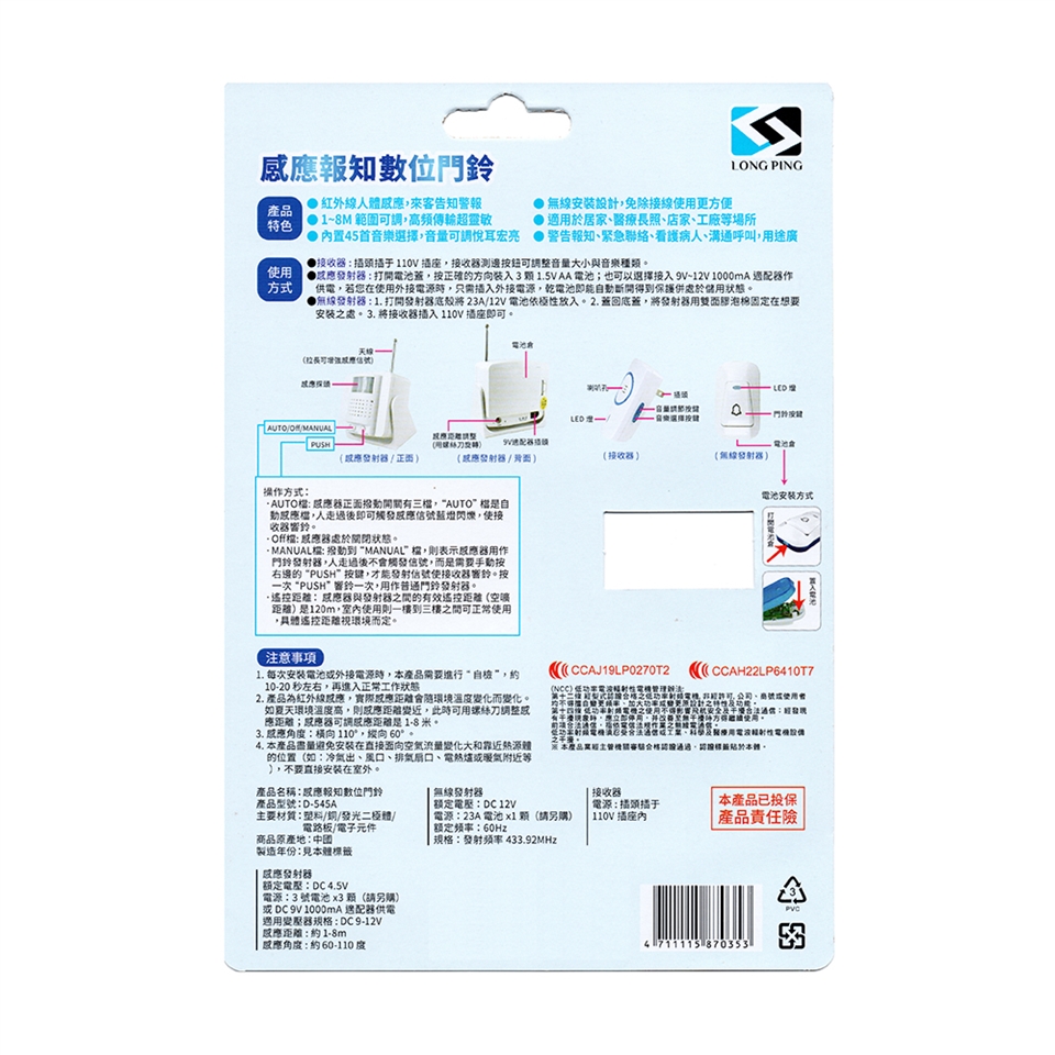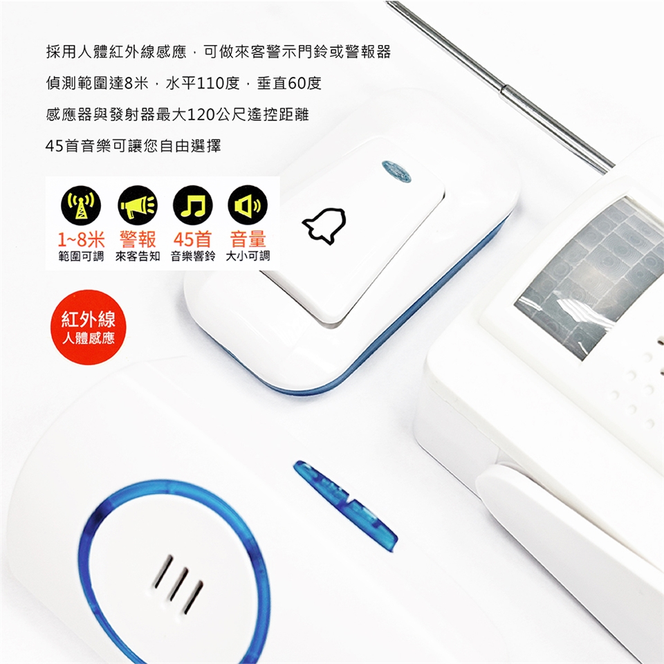 採用人體紅外線感應原理,可做為來客警示門鈴或警報器。