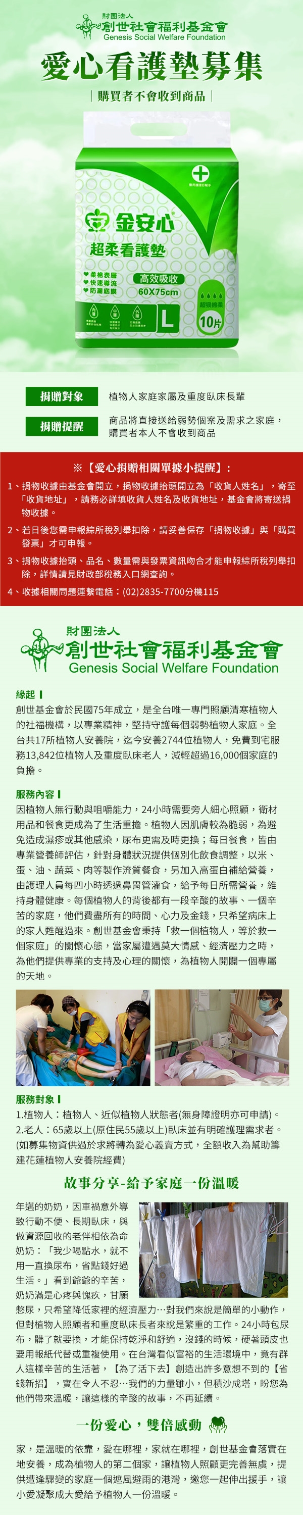 創世基金會x愛心募集。愛心看護墊募集(購買者本人不會收到商品)