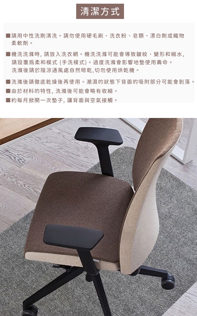 2.機洗洗滌時,請放入洗衣網。機洗洗滌可能會導致皺紋、變形和縮水,請設置為柔和模式(手洗模式)。過度洗滌會影響地墊使用壽命。洗滌後請於陰涼通風處自然晾乾,切勿使用烘乾機。