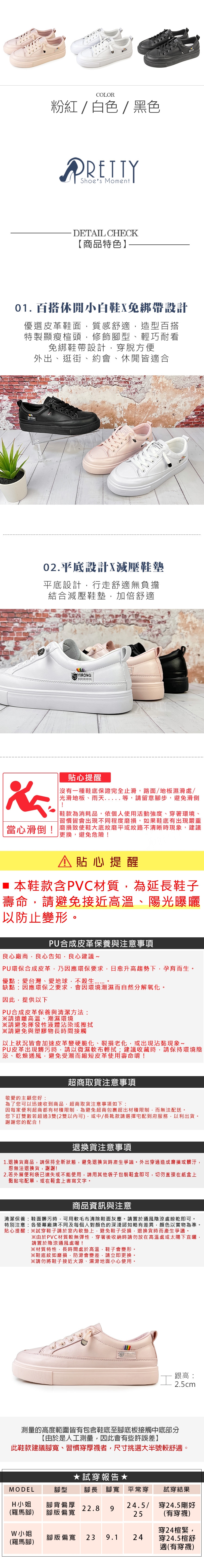 P.S. 貼心提醒,本鞋款含PVC材質,為延長鞋子壽命,請避免接近高溫、陽光曝曬,以防止變形。