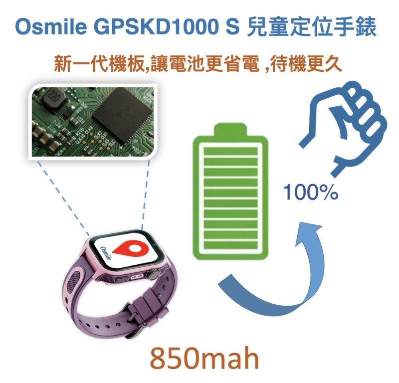 Osmile GPSKD1000-S 手錶不使用時,至少兩天充一次電能延長電池使用壽命
