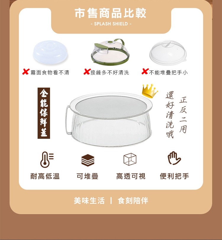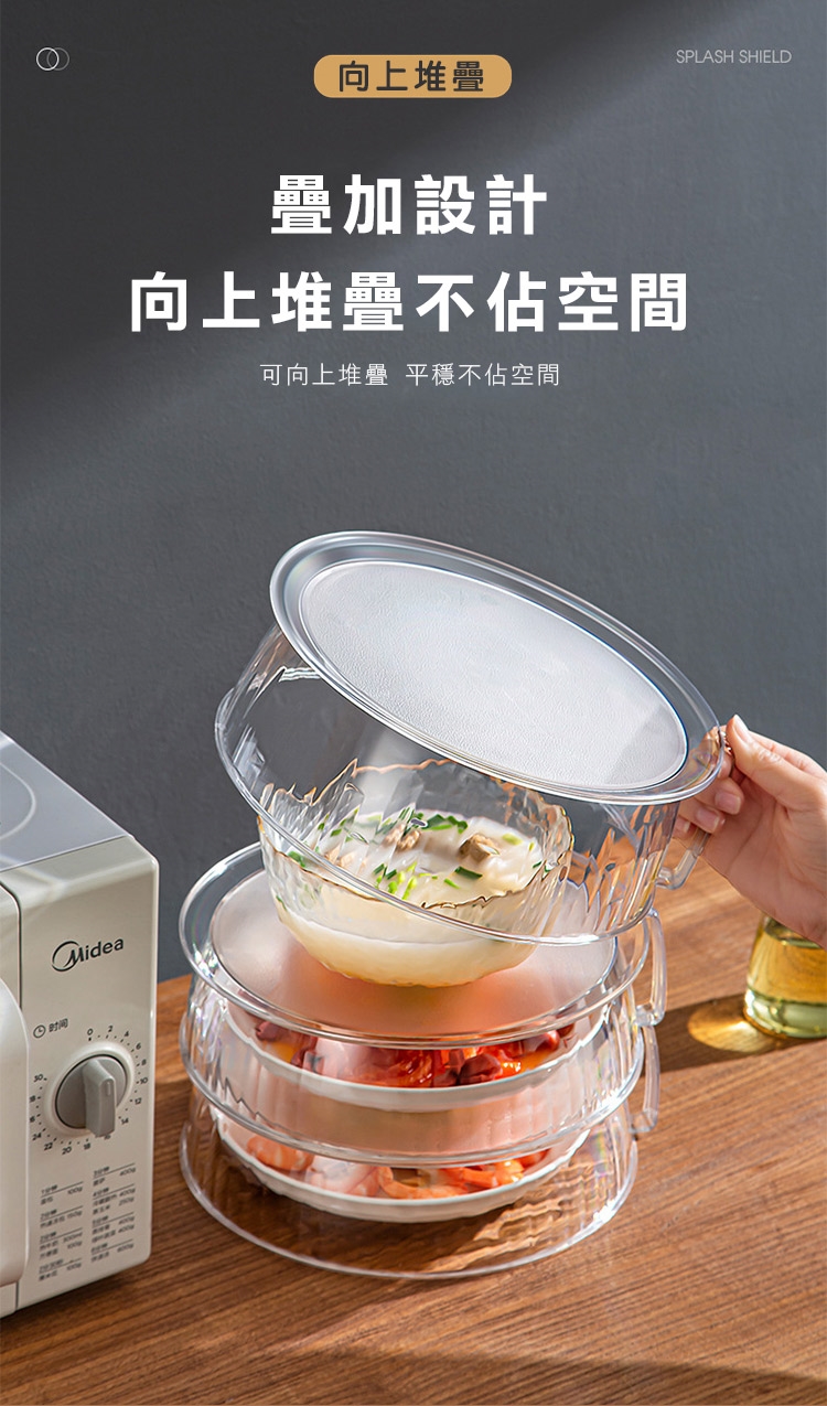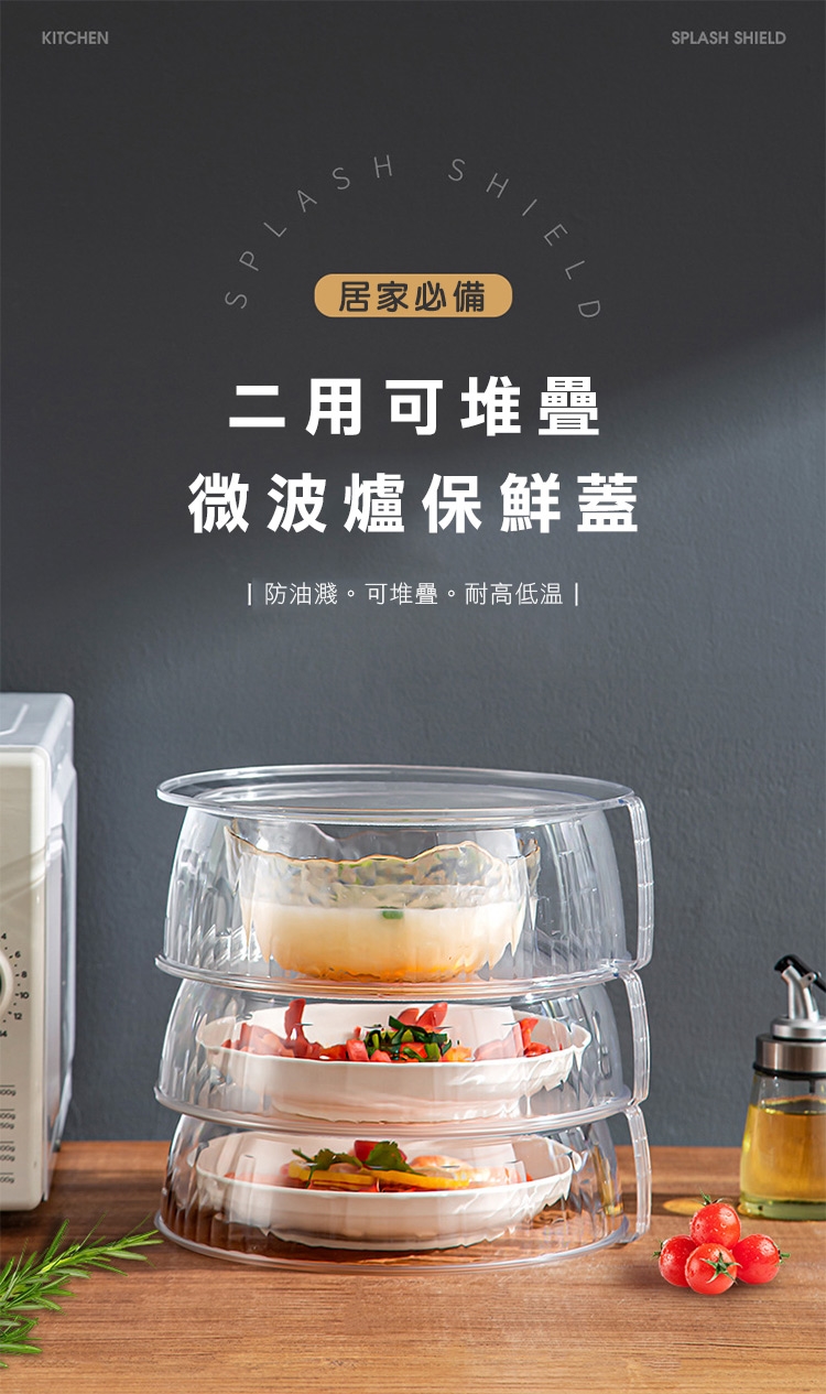 微波爐內總是髒兮兮嗎,二用可堆疊微波爐保鮮蓋,加大尺寸碗盤一把罩,可耐熱200度C還可冷藏阻味保鮮,實用側邊大把手,不燙手拿取便捷,疊加設計可向上堆疊,食物保鮮保溫防蟲不佔空間,正反兩用可當水果洗菜籃,居家必備的好物!