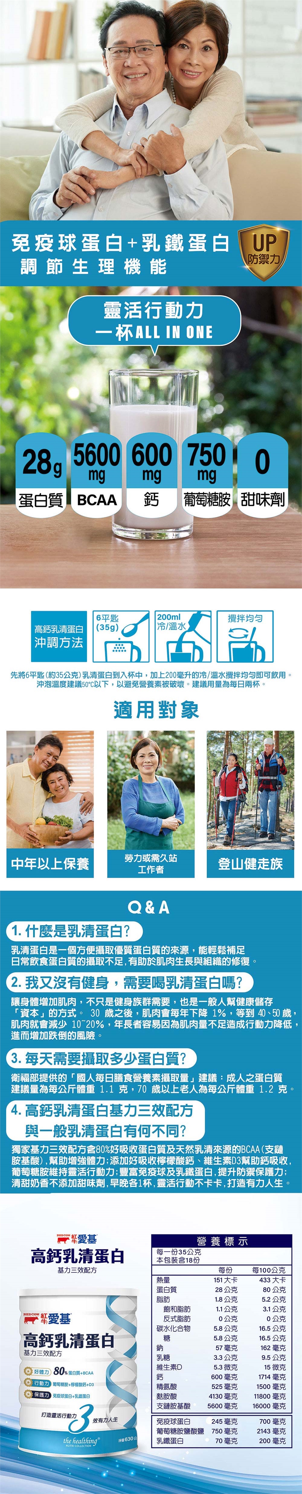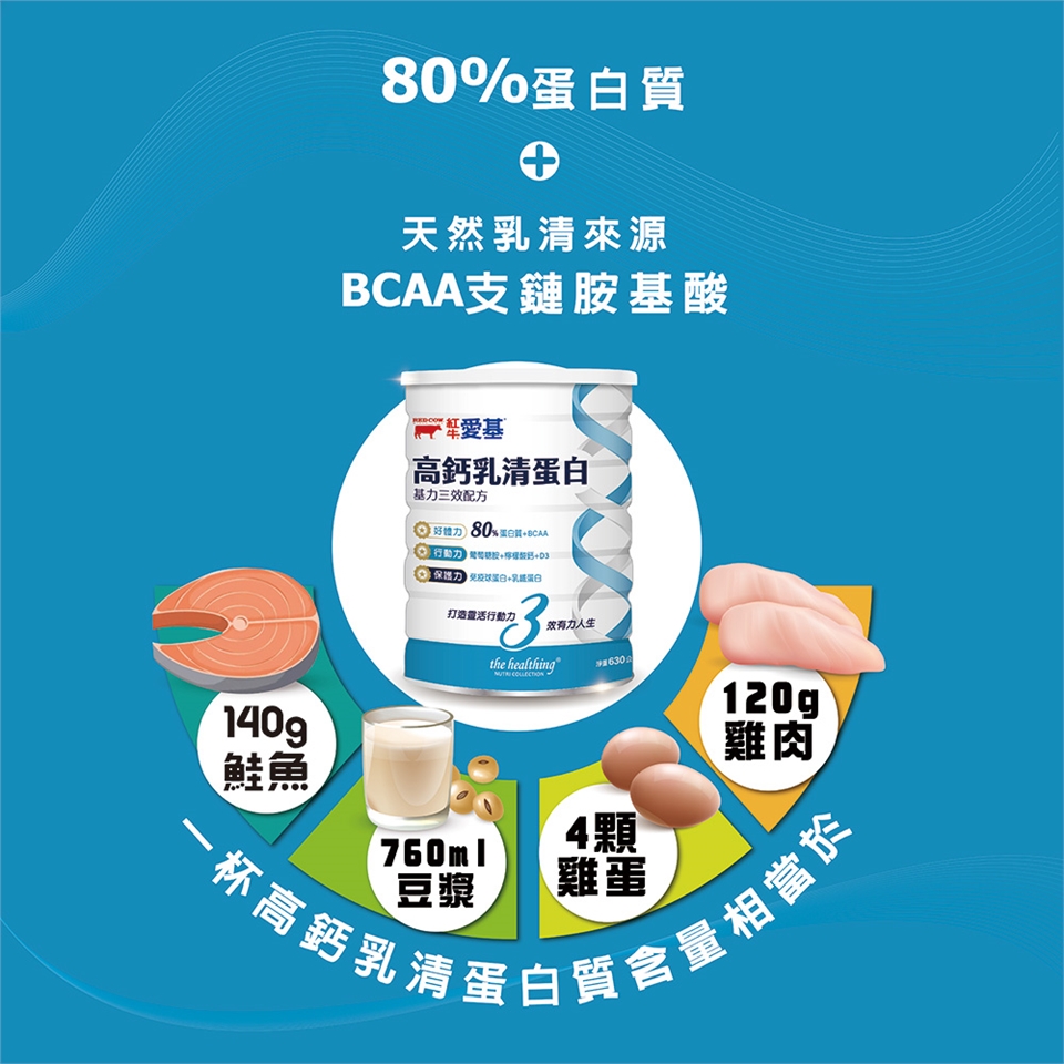 先將6平匙(約35公克)乳清蛋白倒入杯中,加入200毫升的冷/溫水攪拌均勻即可飲用。