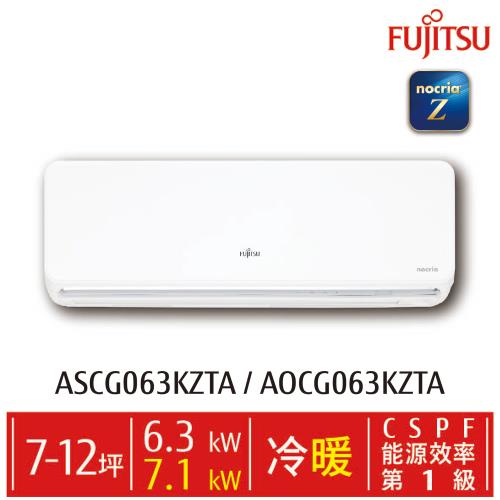 FUJITSU 富士通 nocria Z系列 變頻冷暖分離式冷氣 7-12坪(ASCG063KZTA/AOCG063KZTA)