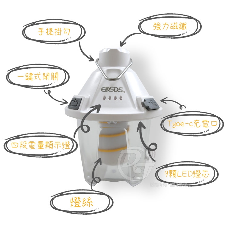EDSDS 多功能充電式LED露營燈 EDS-L018