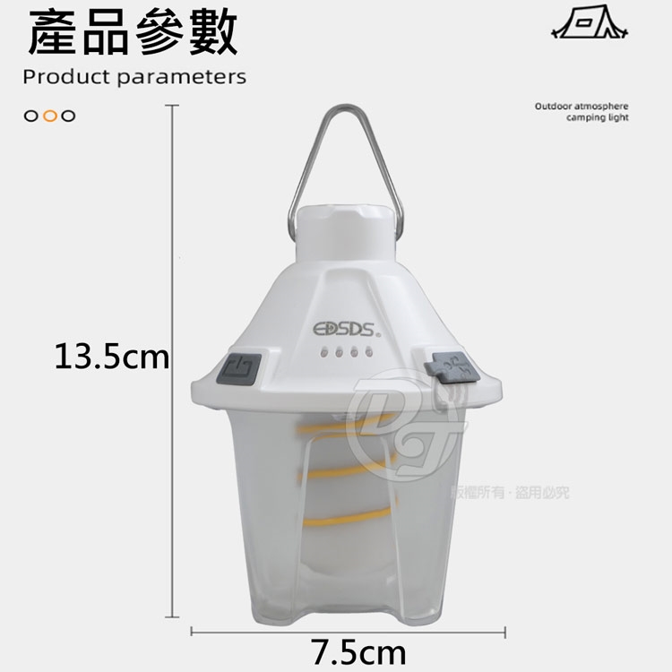 商品規格:◎品名:EDSDS 多功能充電式LED露營燈 EDS-L018