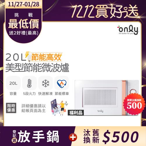 【農曆年前配達~倒數中】only節能高效20L美型微波爐OM20-M22簡約白 福利品(節能標章20公升機械式)