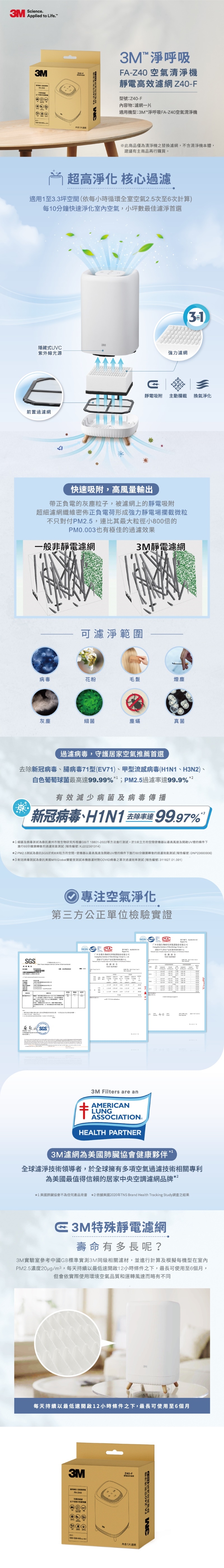 3M FA-Z40 空氣清淨機專用濾網 Z40-F