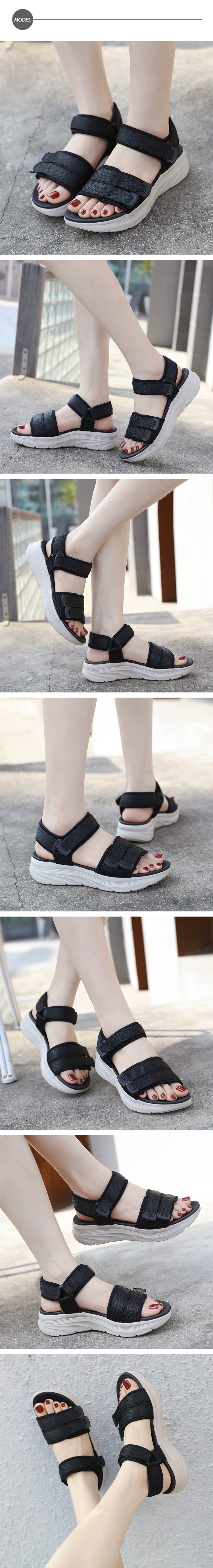 【NO SUB】魔鬼粘運動風厚底休閒涼鞋/個性魔鬼粘織帶運動風厚底休閒涼鞋 女鞋 黑