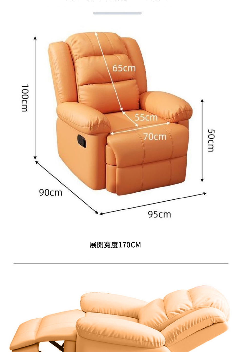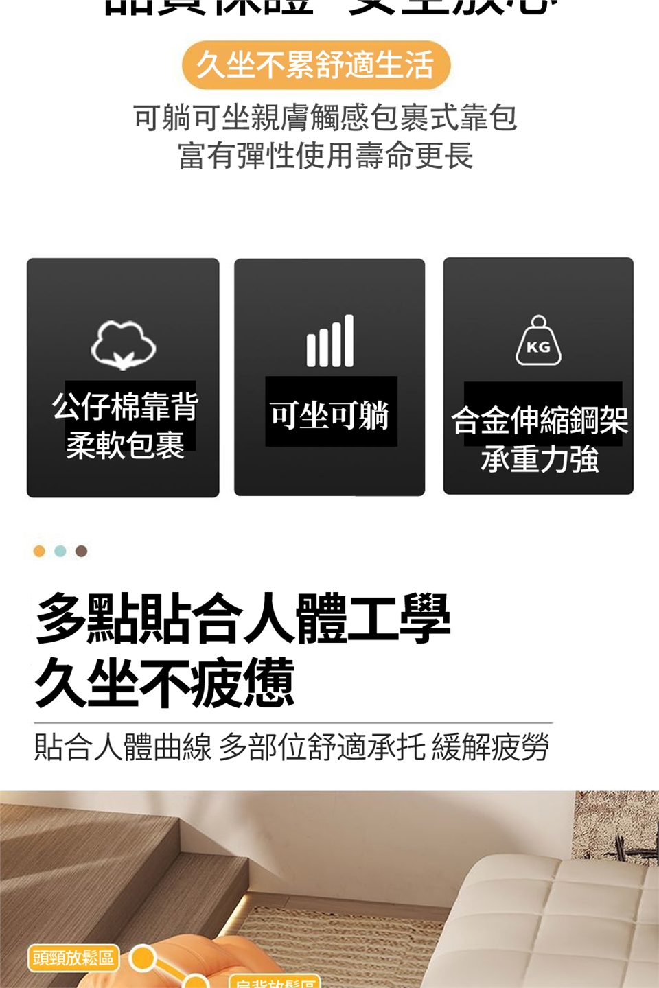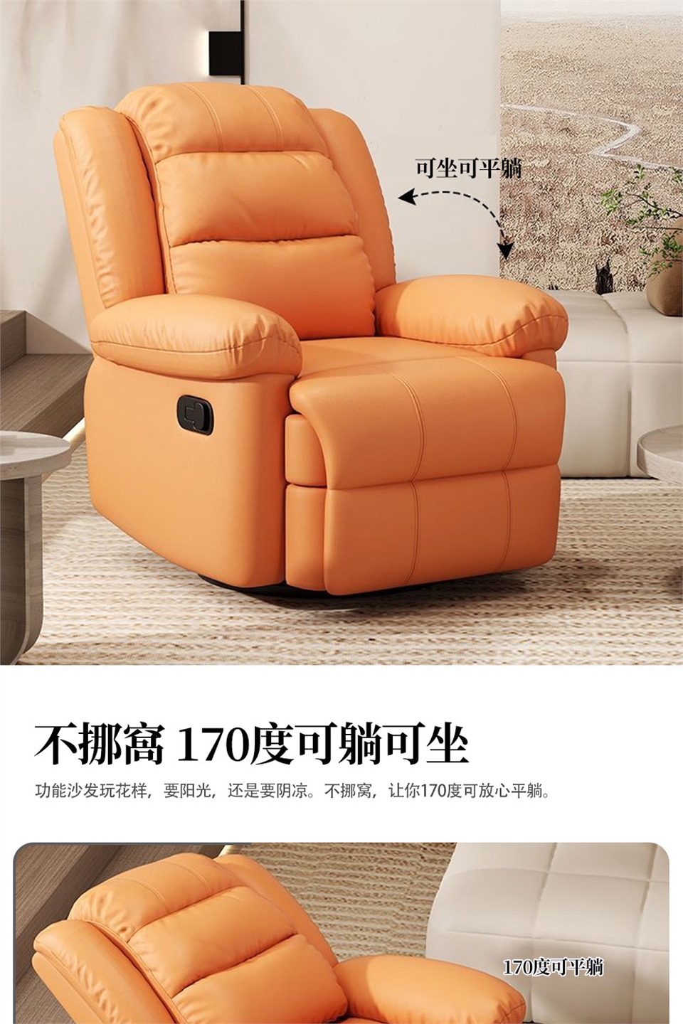 可調170°仰躺,輕鬆調整平躺角度