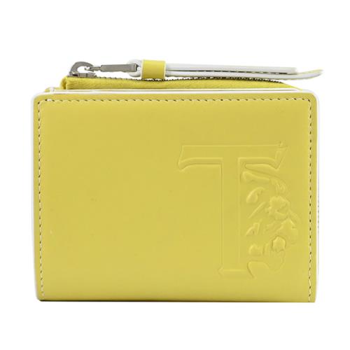 TODS 浮雕LOGO壓紋對開釦式零錢短夾.檸檬黃