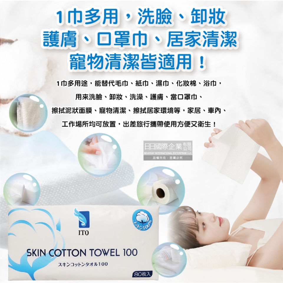 ●品名:純棉乾濕兩用平紋潔面淨膚拋棄式洗臉巾80入/包
