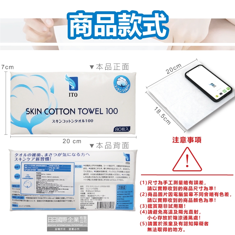 品名:純棉乾濕兩用平紋潔面淨膚拋棄式洗臉巾80/