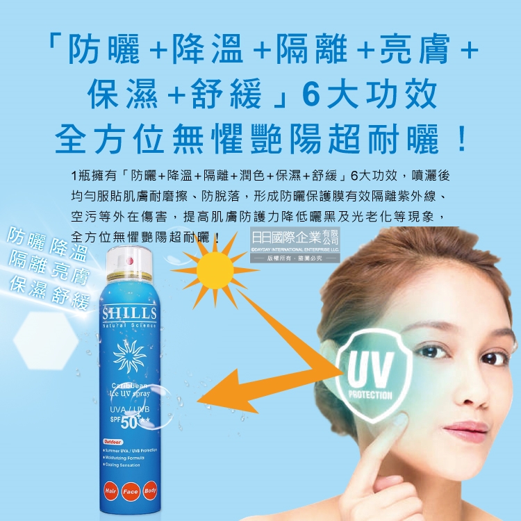 ●品名:很耐曬超清爽SPF50+★★長效約8小時亮白保濕冰鎮防曬噴霧