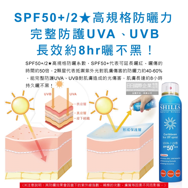 (10)為了保持防曬效果,噴塗量要足夠,並請1~2小時補噴。