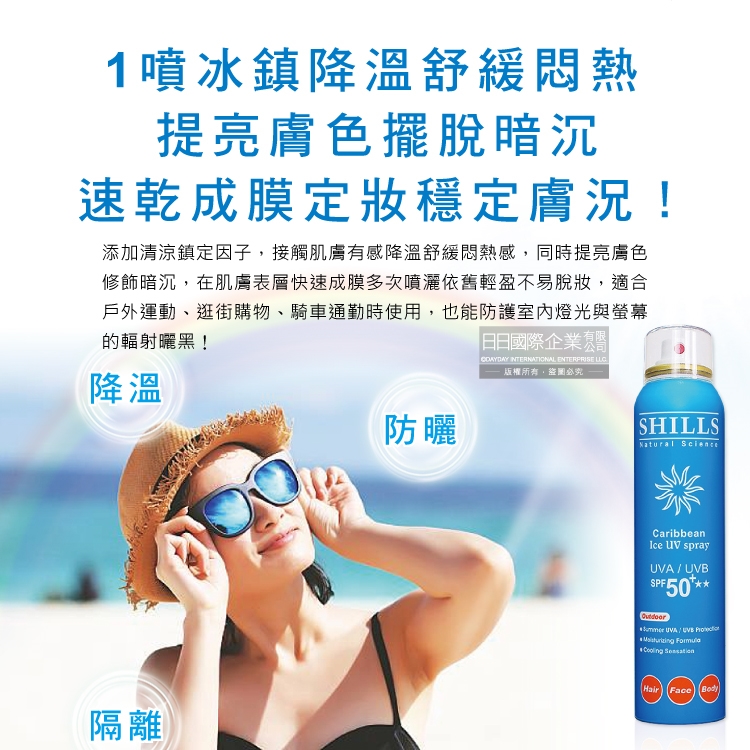 ●品名:很耐曬超清爽SPF50+★★長效約8小時亮白保濕冰鎮防曬噴霧