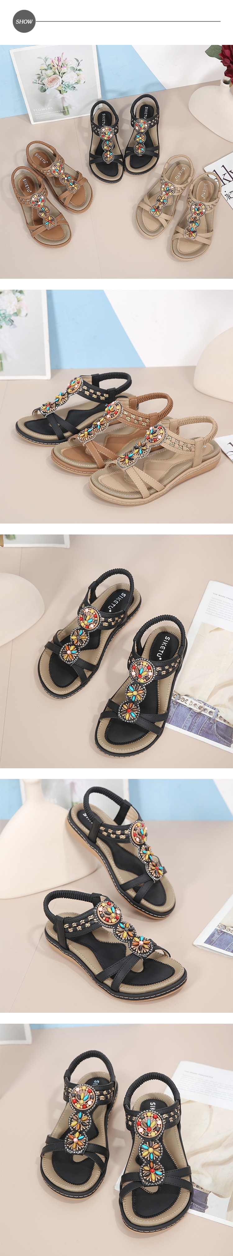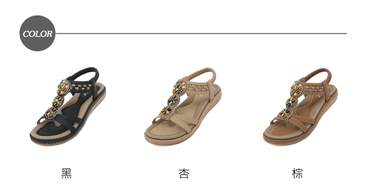 【QUEENA】編織串珠交叉涼鞋/繽紛寶石花朵編織串珠交叉設計民族風涼鞋 女鞋 黑