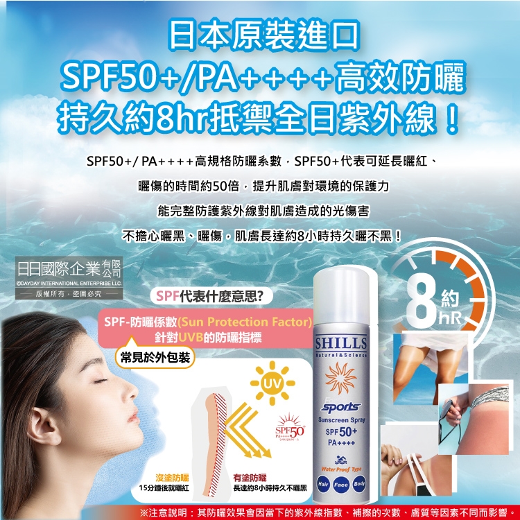 (10)為了保持防曬效果,噴塗量要足夠,並請1~2小時補噴。
