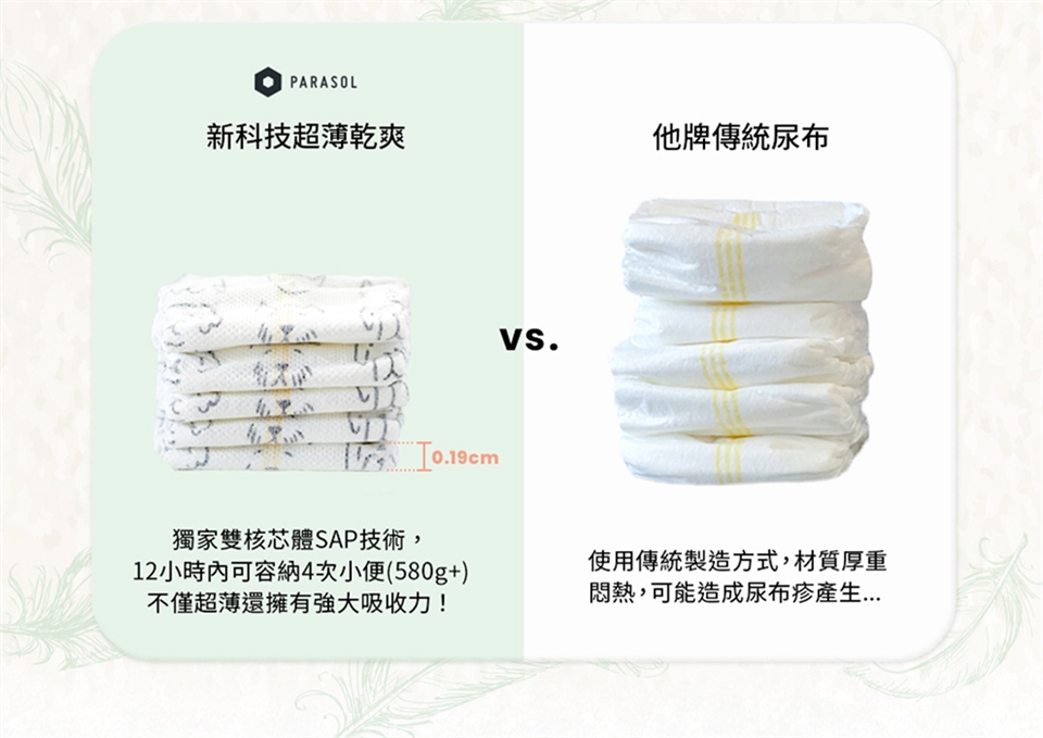 品名:【Parasol】Clear + Dry™ 新科技水凝尿布-工藝升級版 2號/S 禮盒組(2包共80片)