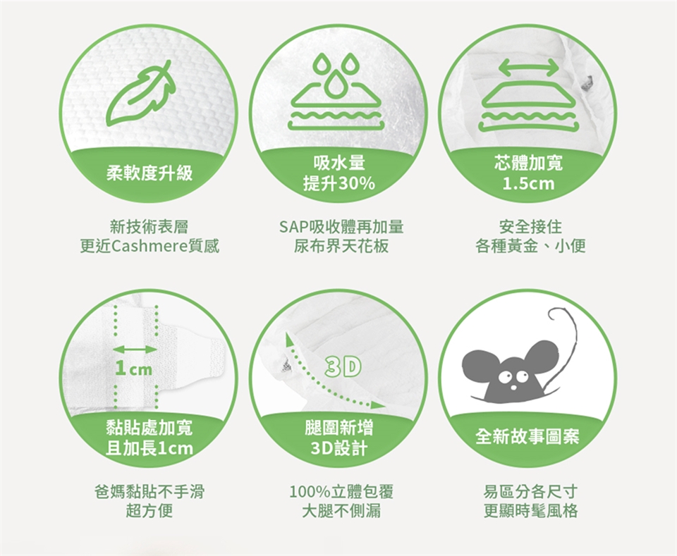 材質:純木紙漿、不織布、透氣PE塑膠層、高分子吸收體、彈力聚氨酯
