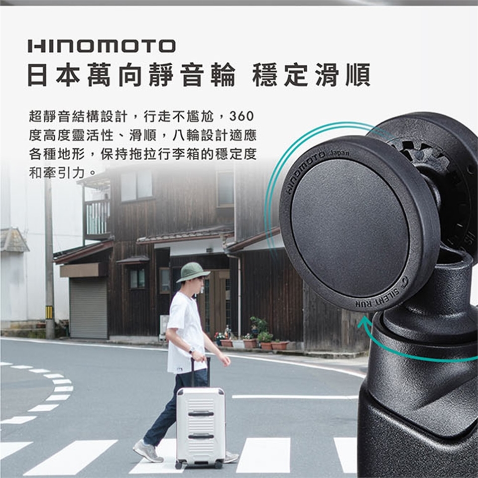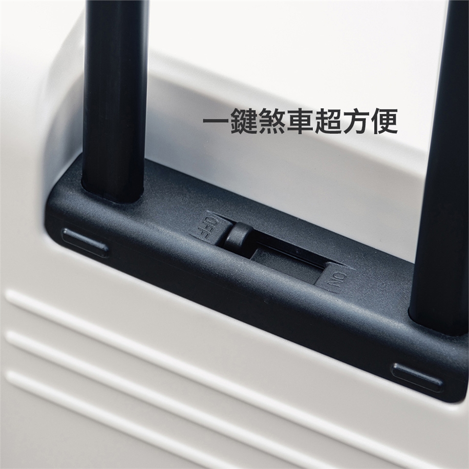 + 箱身右側加裝的腳座,可讓旅行箱避免直接觸地面造成外觀磨損