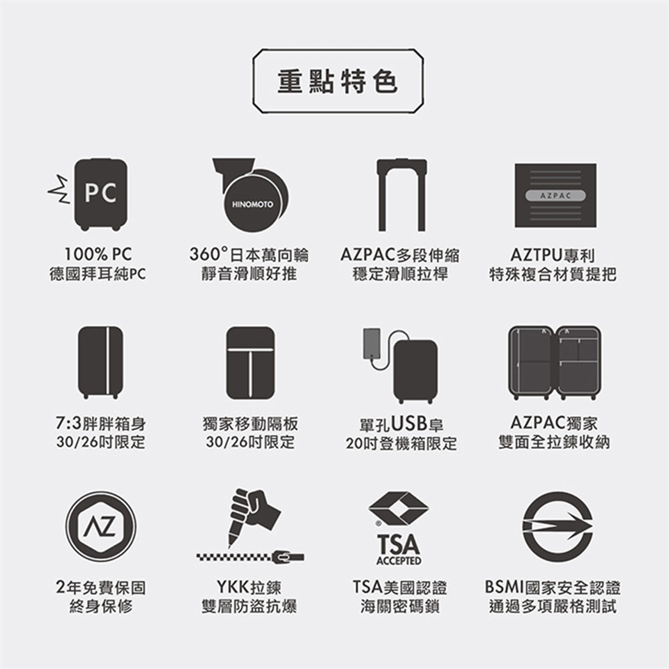 + PP+ABS防撞護角,讓行李在運送過程避免重摔造成破壞